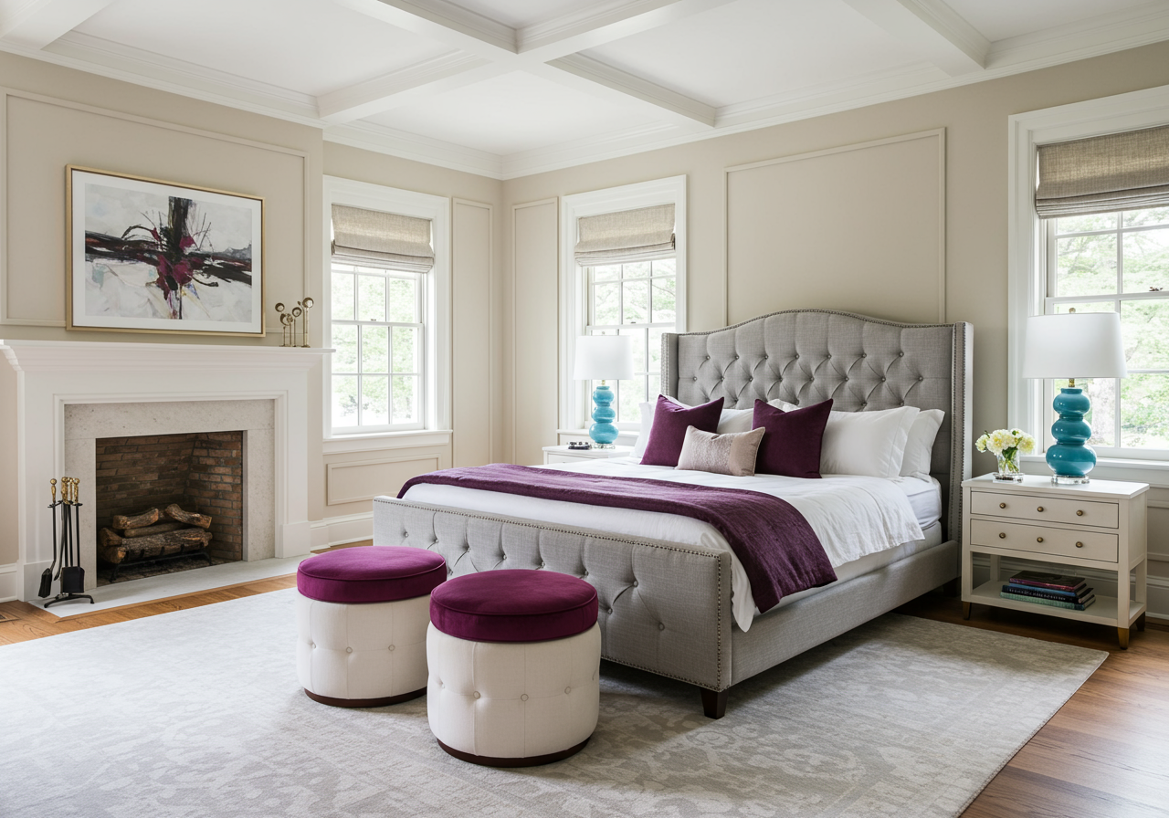 Choose colors that are close together in the same family to add a cohesive splash without going overboard. Use color in your decor pieces including artwork, throw blankets, pillows, and accent furniture to portray a put-together look.